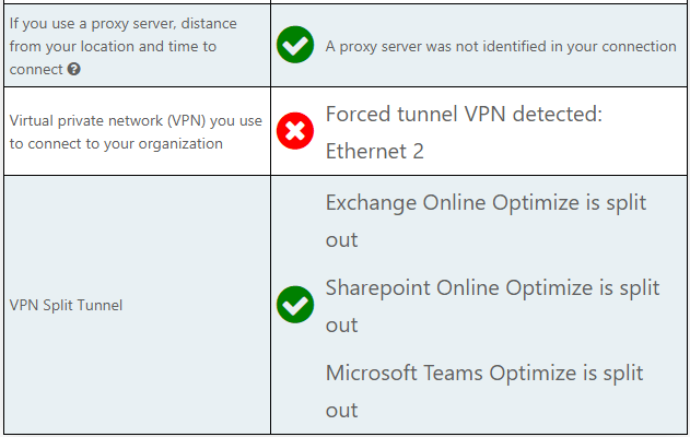 Again, I will take Teams as an example but the tests also return results for Exchange Online and SharePoint online.